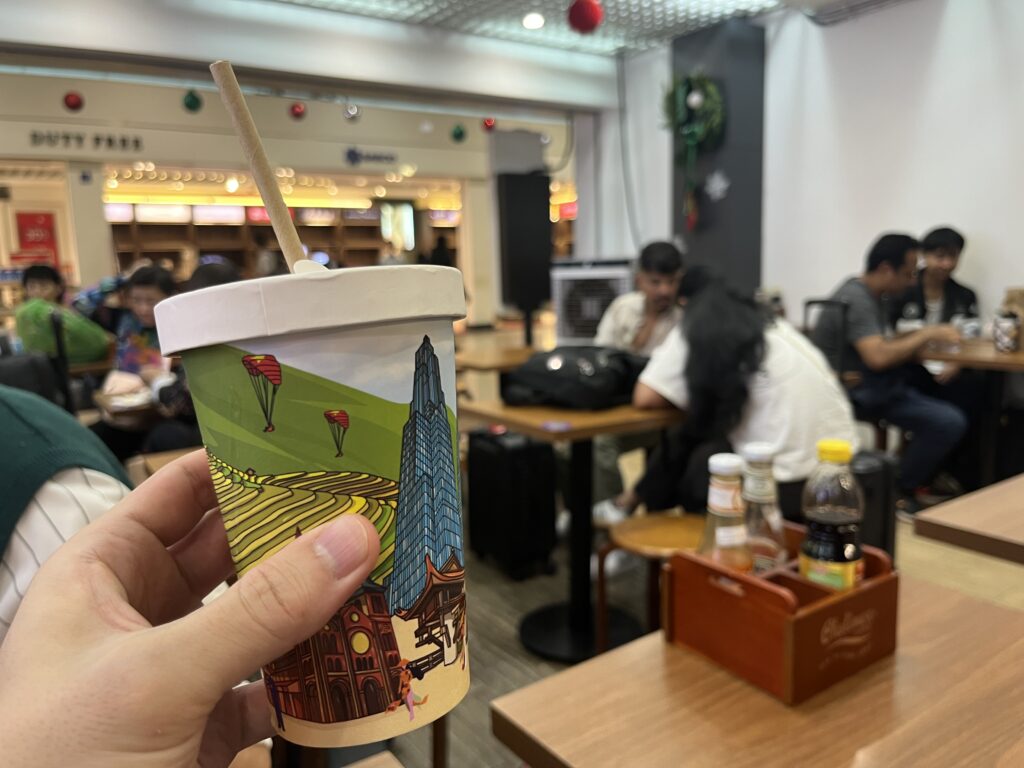 空港に到着すると、早朝だというのに実に大勢の人がいた。荷物の預け入れと出国審査を終え、最後にコーヒーを飲んで出発を待つ。